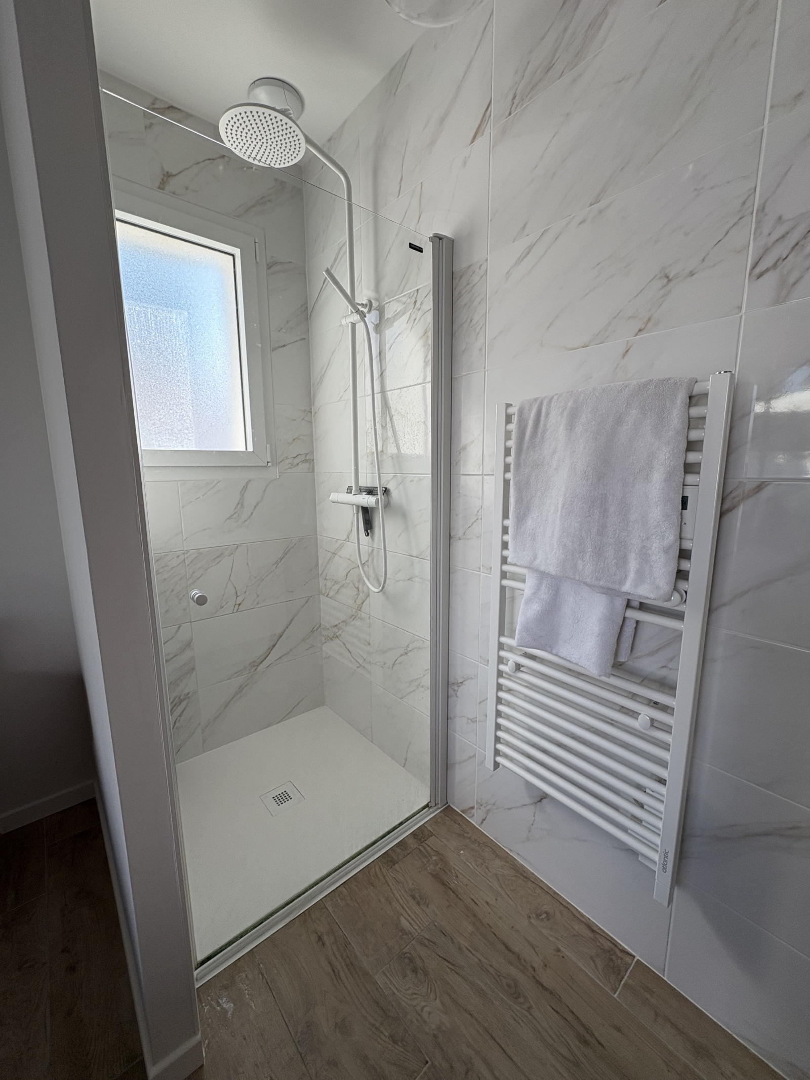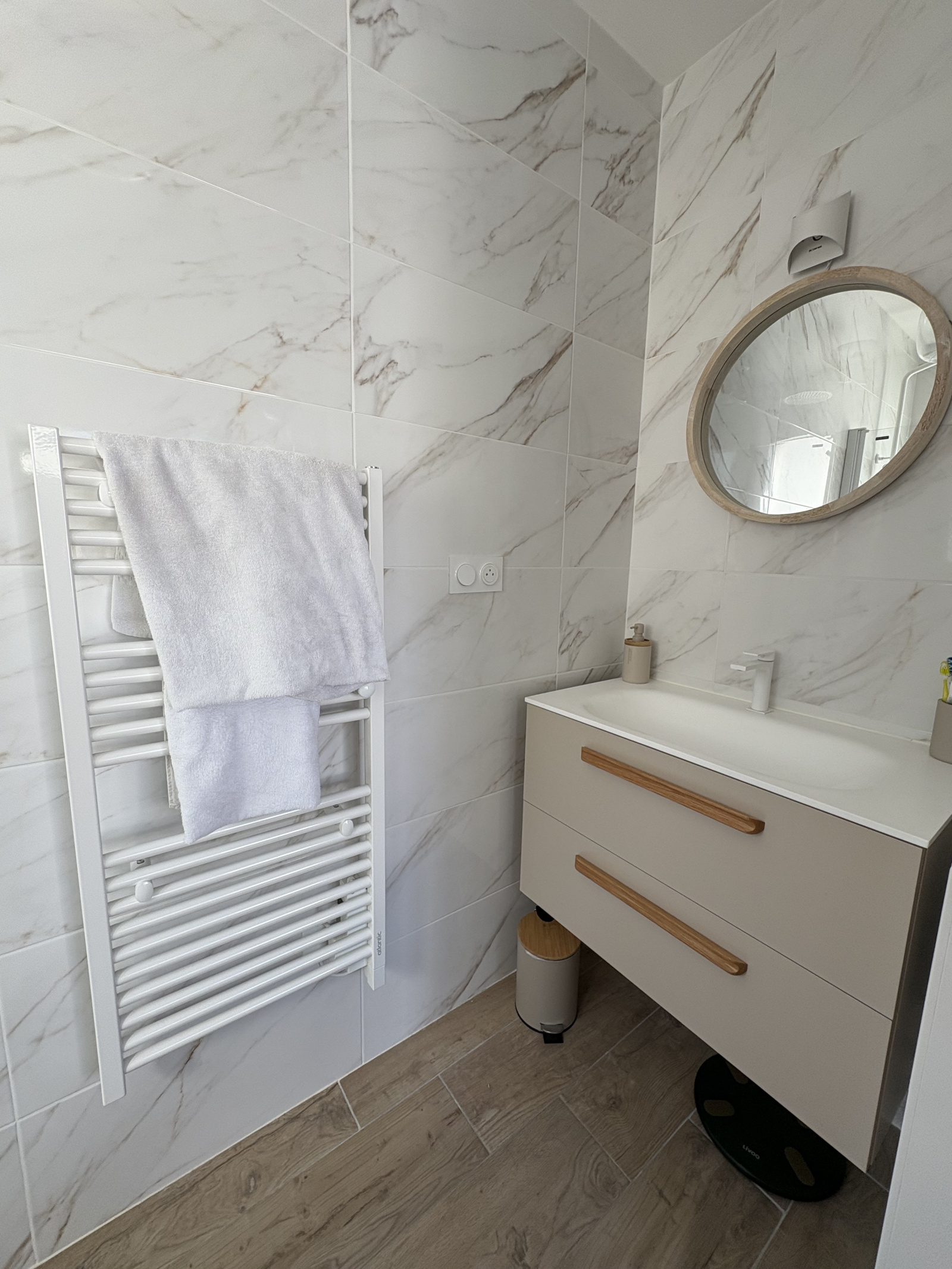 Un garage carrelé et isolé complète l'ensemble. Je suis également climatisé, possède une borne de charge pour voiture électrique, d'une vidéosurveillance et alarme, une centralisation sur mes volets et porte de garage, ainsi qu'un adoucisseur d'eau.