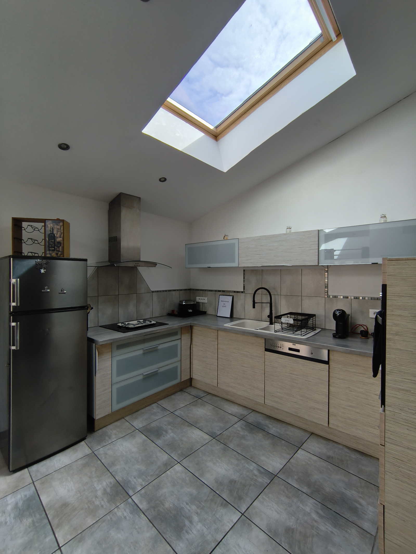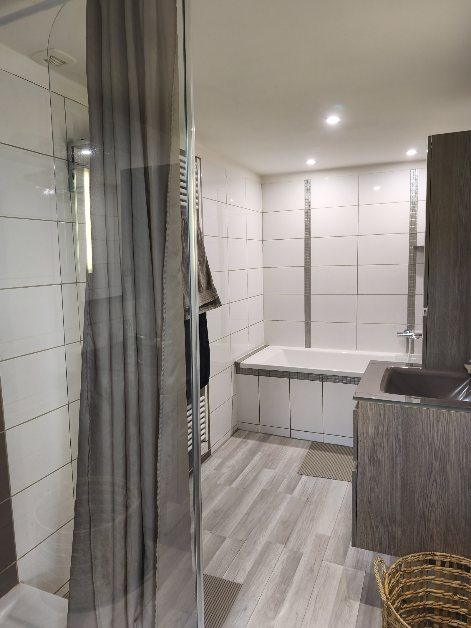 Dès que vous franchissez mon entrée, je vous facilite la vie avec un cellier pratique pour tout organiser. Mais c’est un peu plus loin que le charme opère vraiment. Ma pièce de vie : une salle à manger conviviale avec une cuisine ouverte entièrement équipée, parfaite pour vos soirées entre amis et disposant d'une très belle hauteur sous plafond. Ma surprise : Mon salon n'est pas comme les autres... Il accueille actuellement un bain balnéo. Imaginez-vous vous détendre dans les bulles, au cœur même de votre espace de vie. Un vrai luxe sensoriel ! Une salle d'eau avec WC complète ce niveau pour votre confort quotidien.