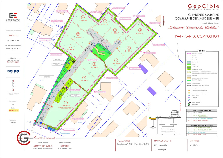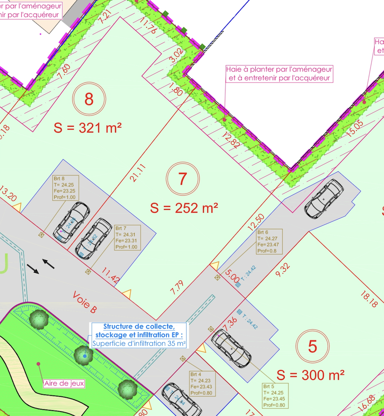 Ce terrain est situé dans un charmant petit lotissement composé de seulement 10 terrains, créant ainsi une ambiance conviviale et paisible. Pour le bonheur de vos enfants, un espace de jeu central est prévu, où ils pourront se divertir en toute sécurité, tandis que vous pourrez profiter du calme environnant.