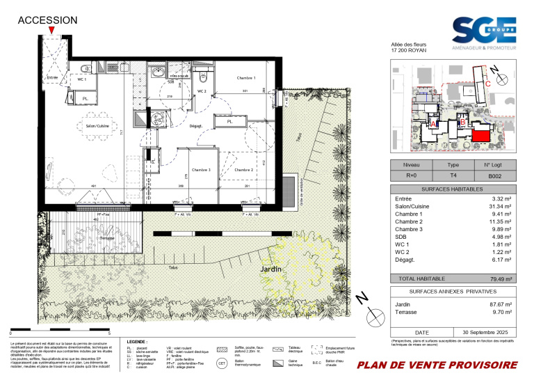 Découvrez cet appartement T4 de 79,49 m², exposé plein sud, situé dans Le Jardin des Vagues, une résidence neuve intimiste et élégante, à quelques mètres à pied de la plage du Pigeonnier – emblème discret et chic de la côte royannaise – et à proximité immédiate de la vibrante plage de Pontaillac.