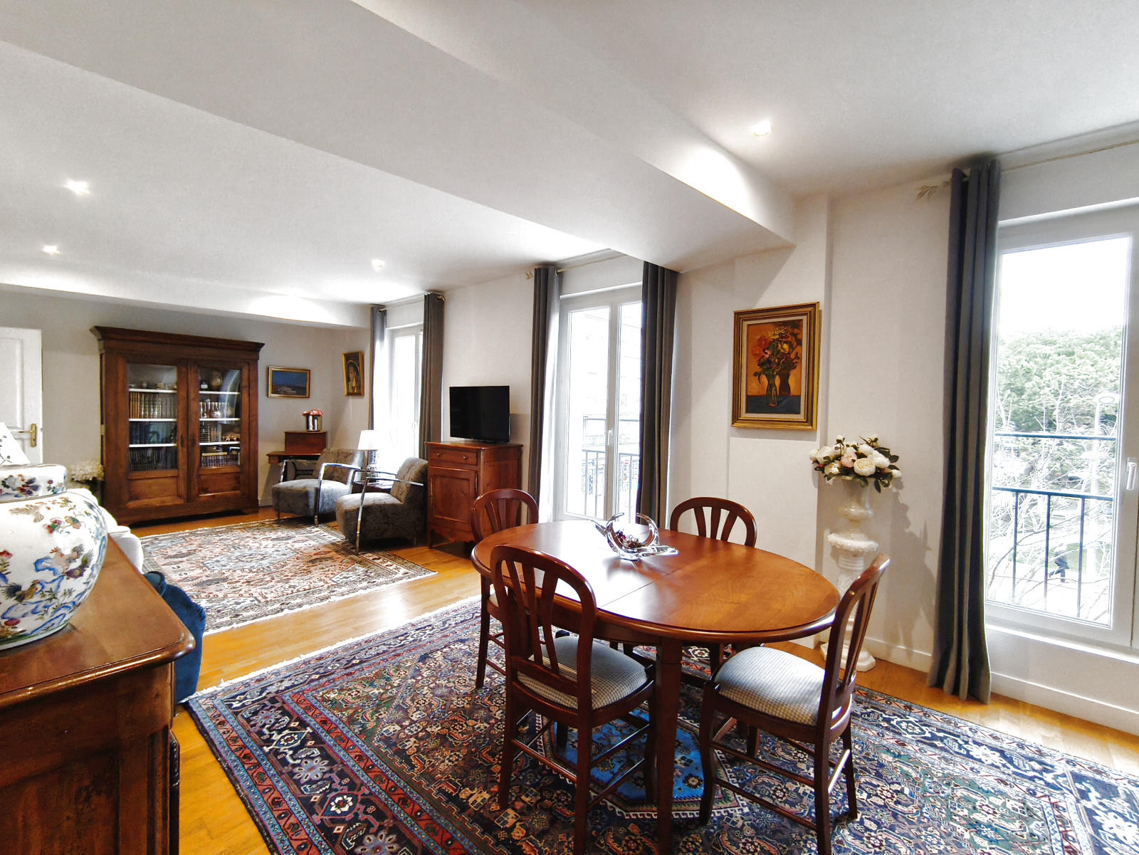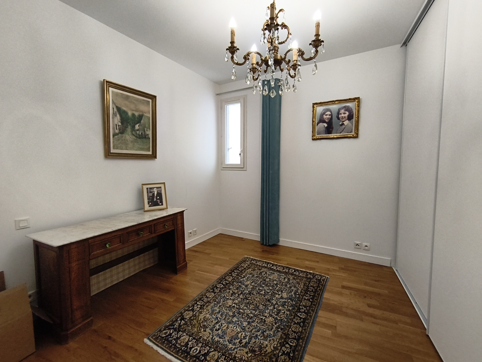 Dès l’entrée, je vous accueille avec un placard intégré, pratique et bien pensé. Puis je m’ouvre sur un spacieux séjour baigné de lumière, sublimé par un parquet massif qui donne immédiatement le ton : ici, tout est soigné, chaleureux et intemporel.