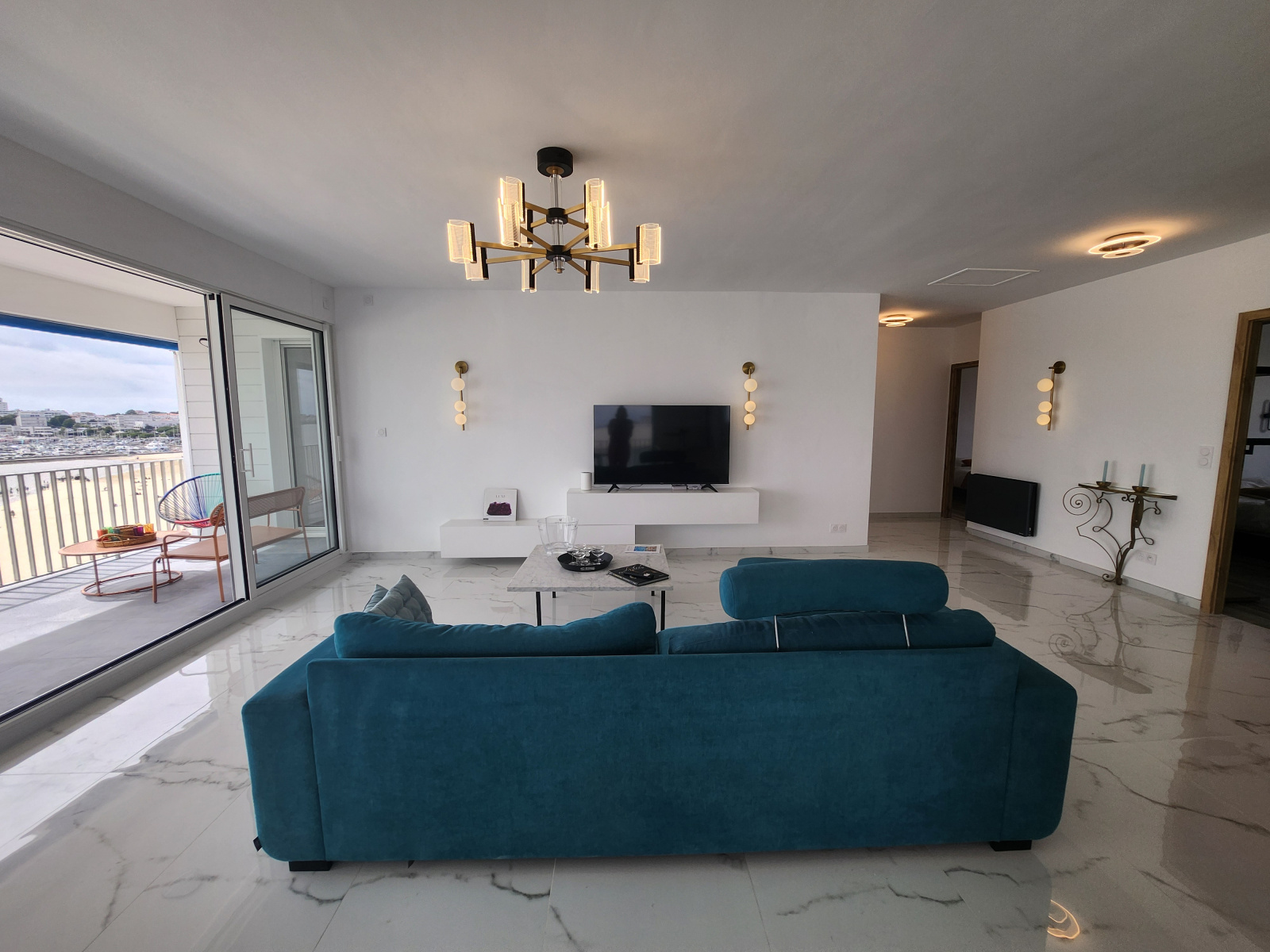 Entièrement rénové avec des matériaux de qualité, je vous propose des espaces lumineux et raffinés. Dès l’entrée, vous serez séduit par mon vaste séjour baigné de lumière, avec sa cuisine entièrement équipée. De ma terrasse couverte de plus de 12 m², vous pourrez admirer une vue mer à 90°, un véritable tableau vivant à chaque instant de la journée.