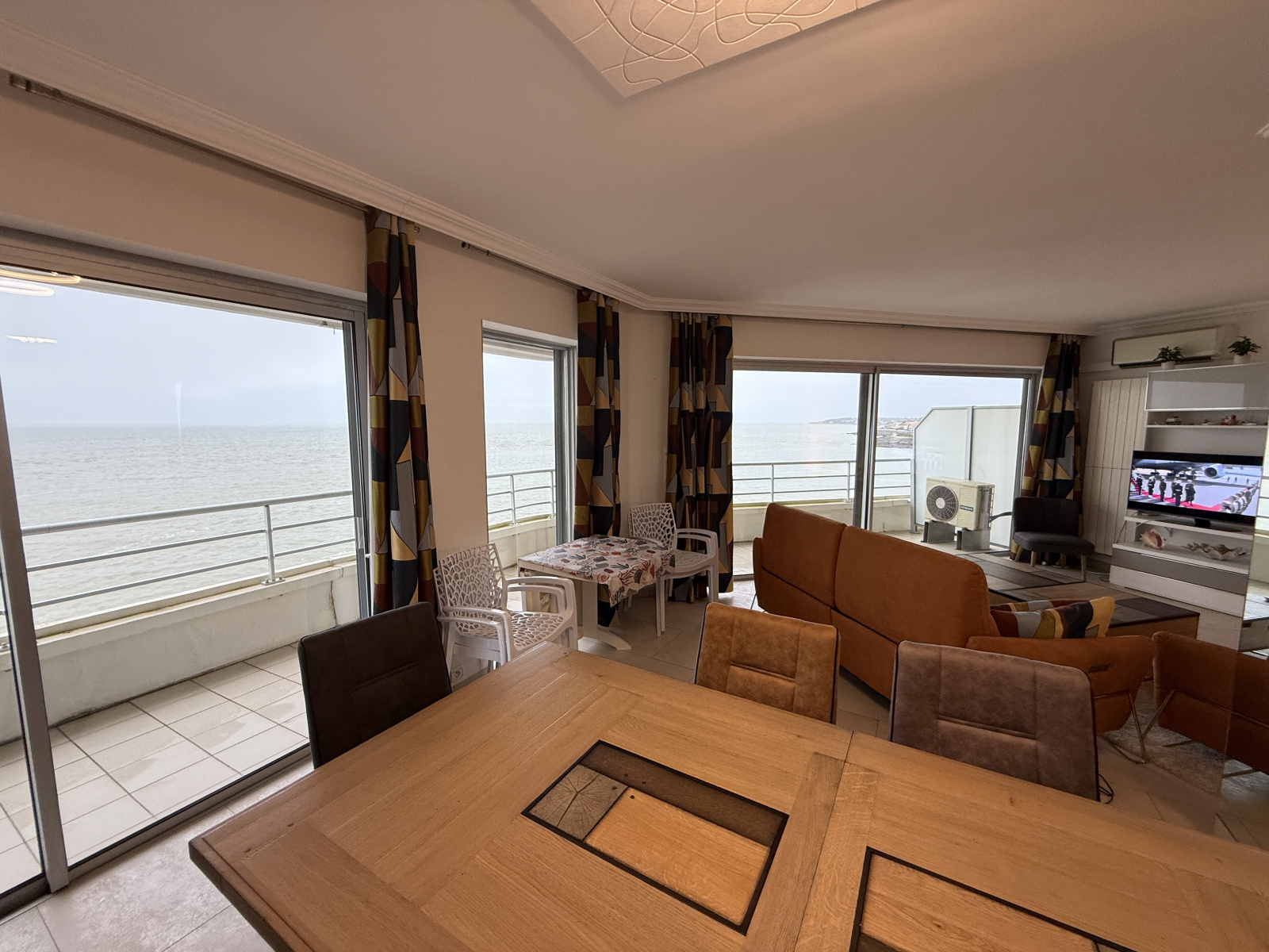 Ma plus grande fierté ? Ma pièce de vie baignée de lumière. Imaginez 40 m² de confort s'ouvrant sur un balcon généreux. De là, je vous offre un spectacle permanent : une vue imprenable sur la côte et, majestueux à l'horizon, le Phare de Cordouan qui veille sur vos soirées.