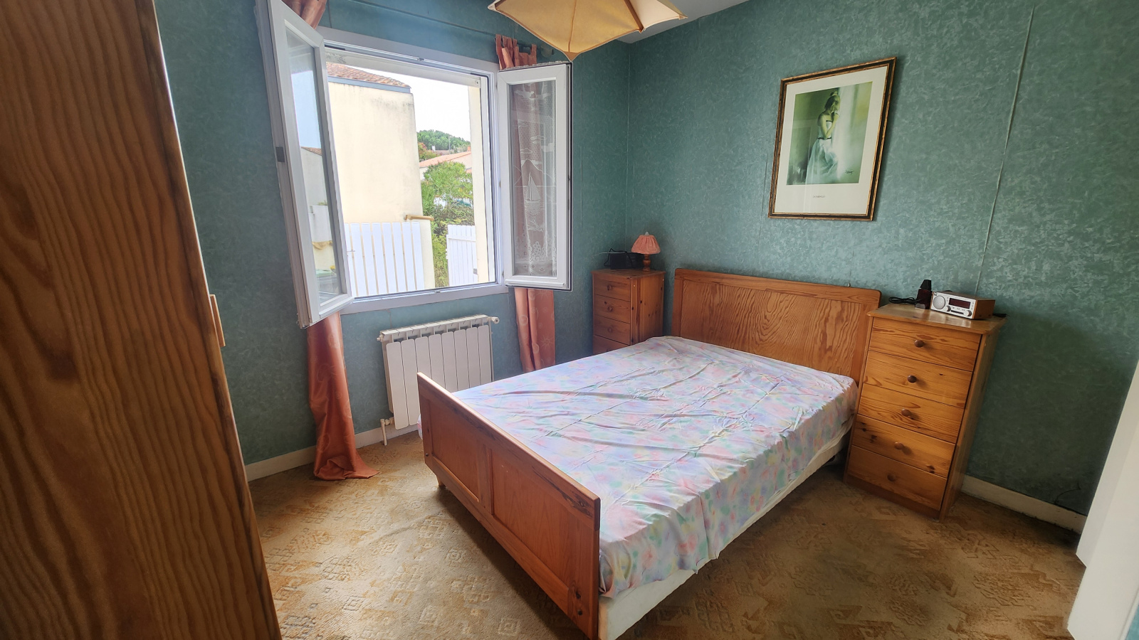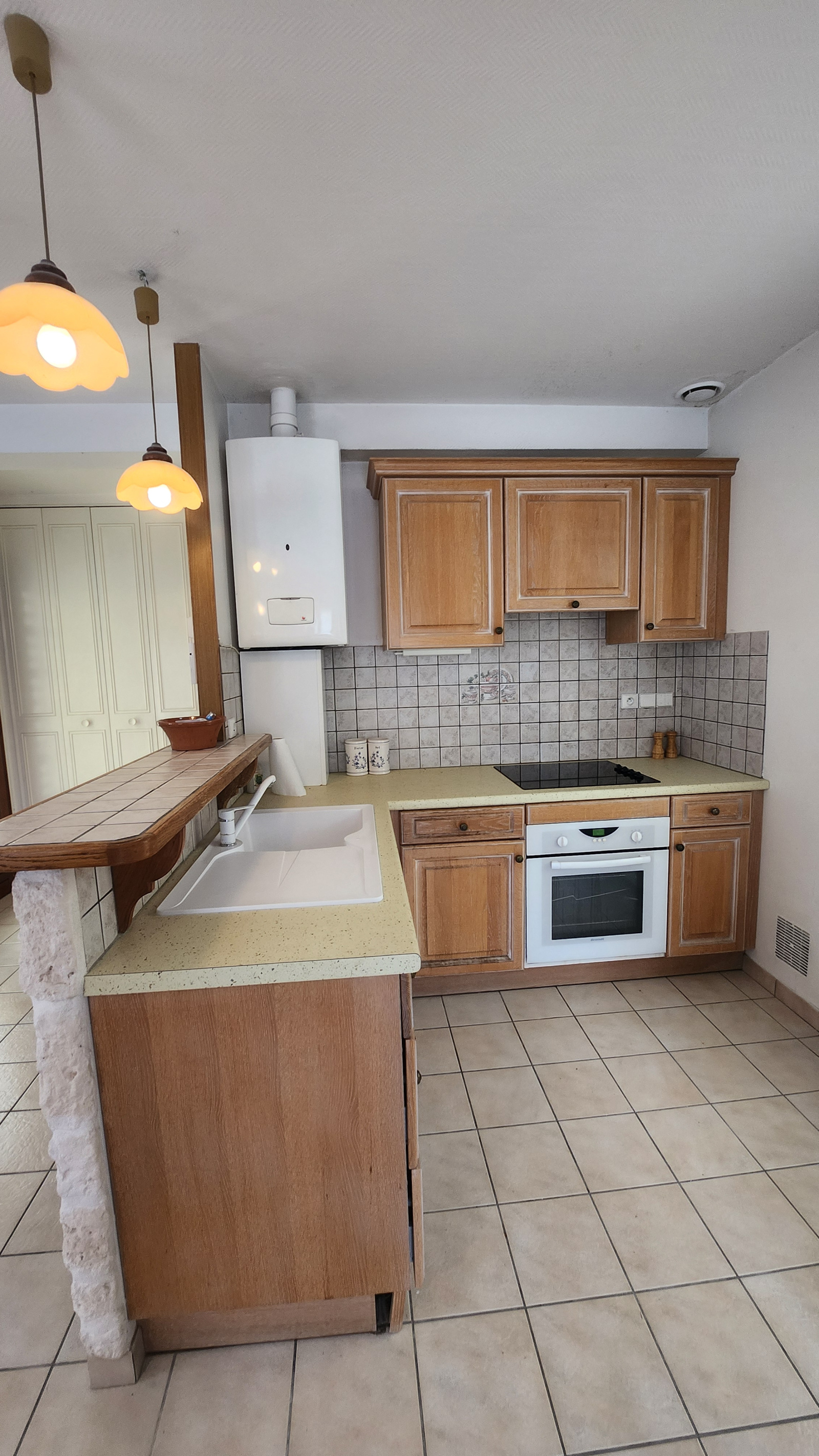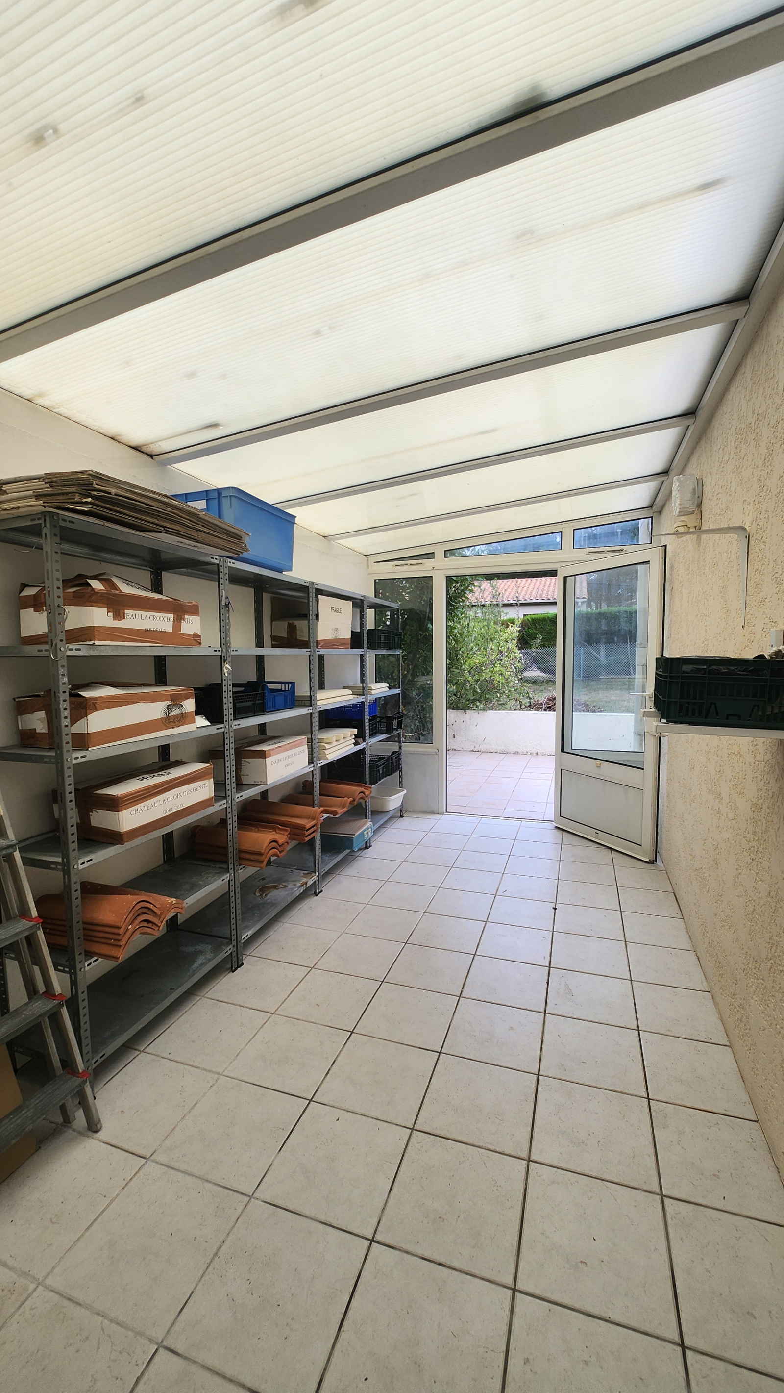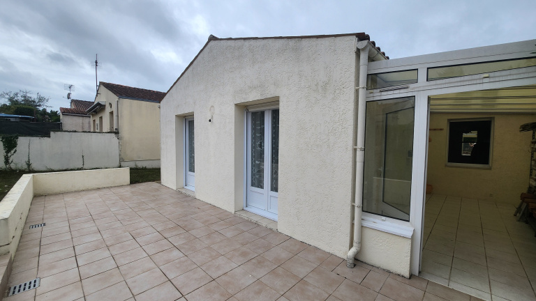 Je dispose d'une entrée avec placard, d'un séjour avec cuisine ouverte équipée, d'une véranda attenante à la cuisine, de deux chambres, d'une salle de bain avec douche et d'un wc.