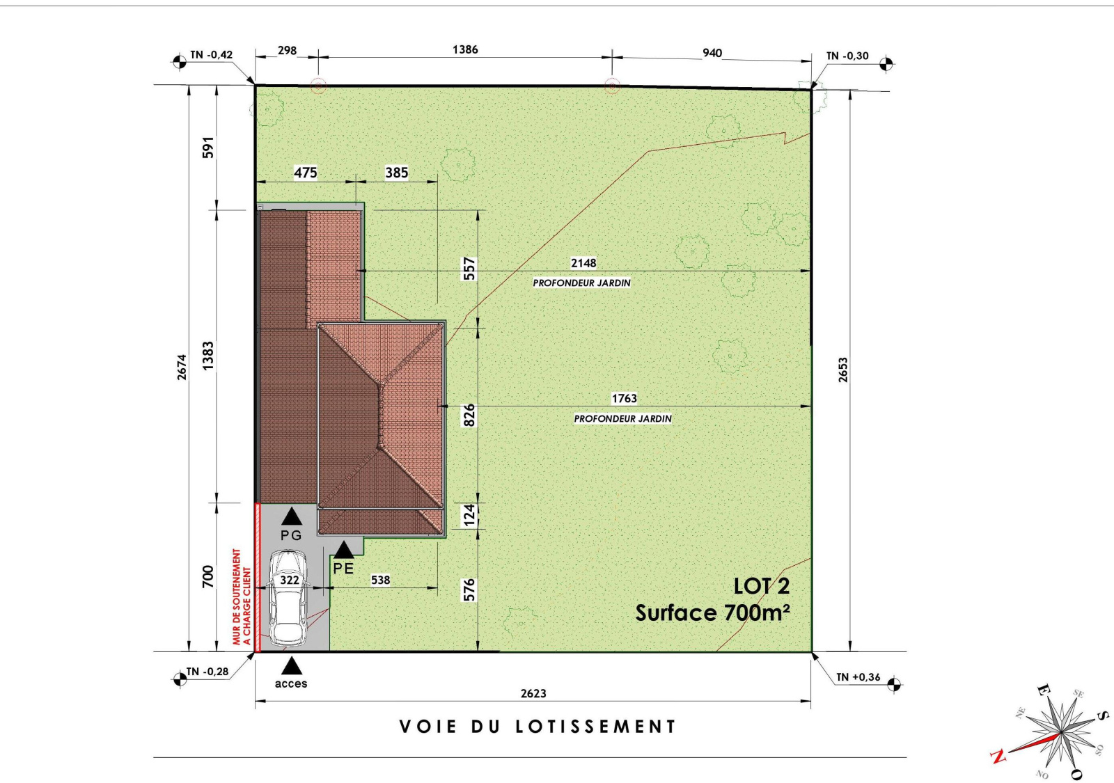 Un agréable terrain de 700 m2 piscinable sera engazonné, clôturé et végétalisé.
