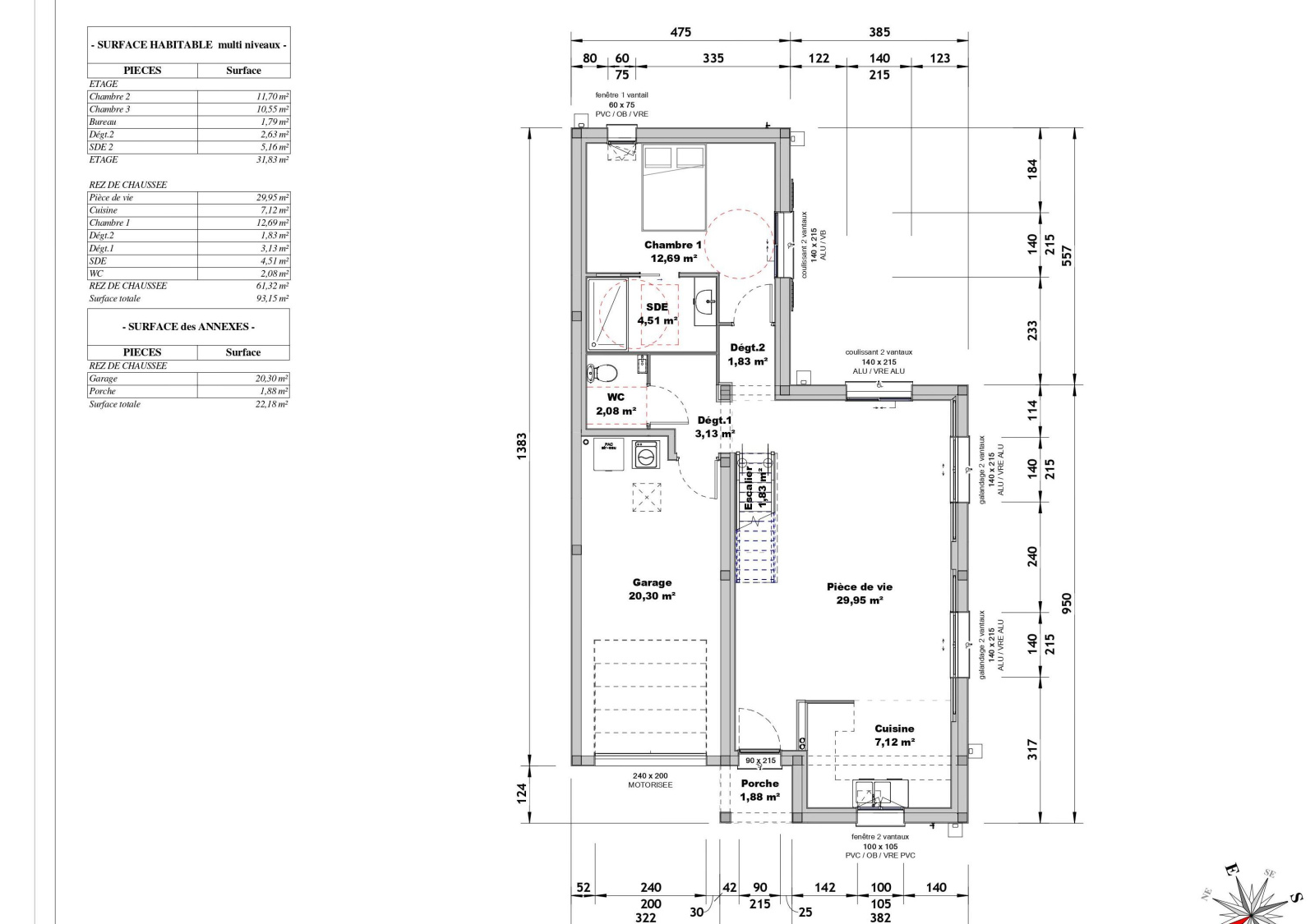 Elle se compose d'un RDC autonome avec son entrée, sa pièce de vie de plus de 37 m2 avec sa cuisine à imagnier, sa chambre parentale de 17,20 m2 comprenant une salle d'eau et son WC indépendant.